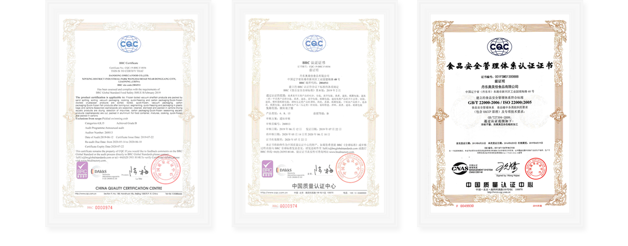 The company has the right to import and export independently, and has obtained the European Union HACCP food safety system certification, the United States FDA food hygiene testing and ISO22000 food safety management system certification and other foreign food and drug management department products access to the European Union and the United States and other western countries pass. To provide more convenient, healthy and delicious ready-to-eat seafood products for the global market.